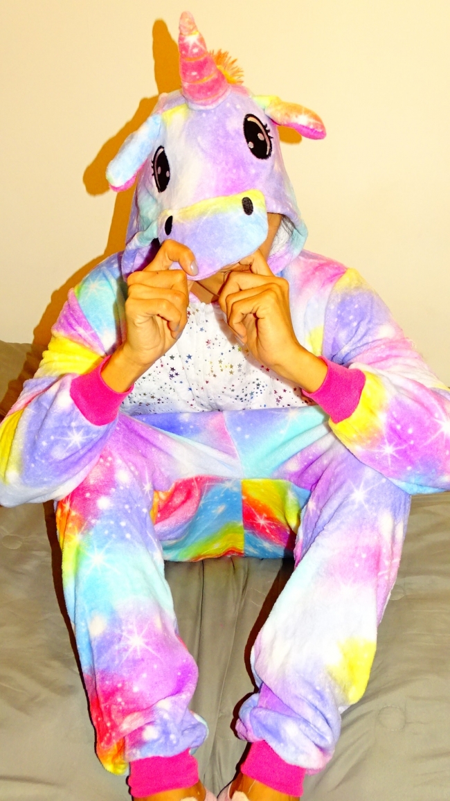 PIJAMA KIGURUMI UNICORNIO LILA CON ESTRELLITAS PANZA ADULTO